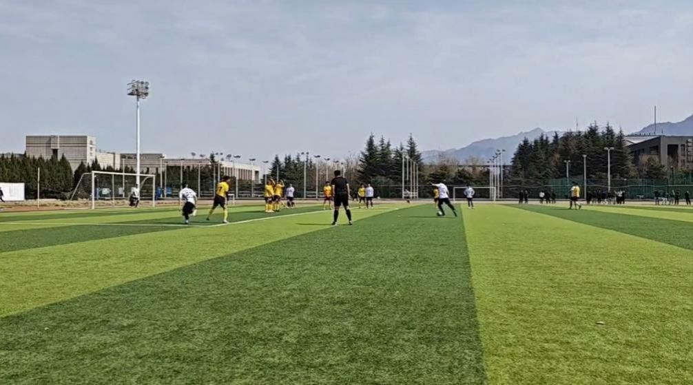 稳扎稳打,对战数学与统计学院队(以下简称“数统”)。第8分钟,郭立城从右路利用个人能力突破后一脚打门被门将奋起扑出,皮球飞至队友李珂澄处。李珂澄凭借自身技巧摆脱对方后卫,将皮球应送进球网。9分钟后,自动化再次撕破数统的防守阵型,李珂澄将球传出,郭立城不加调整直接射门,再度改写比分。第19分钟,郭立城再次从右边路赶至前场,一脚传中瞄准队友田朝旭,田朝旭找准时机成功破门。此后双方打得有来有回,但没能再取得进球,比分最终定格在3:0。