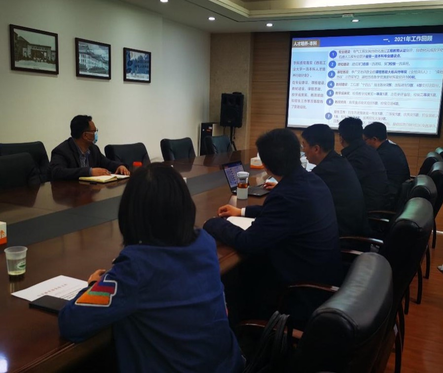 黄攀峰就学院2021年在人才培养、师资建设、科学研究、国际交流与合作、学科建设、学生工作和学院党建等七方面取得的成绩进行了回顾,并结合巡视整改要求,就今年重点工作情况进行了汇报。