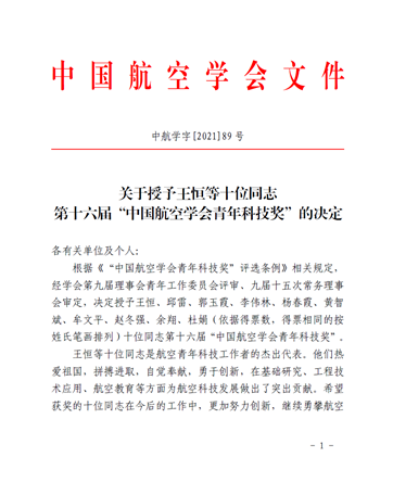 2021年11月3日,中国航空学会正式公布《关于授予王恒等十位同志第十六届“中国航空学会青年科技奖”的决定》文件,性爱直播-在线直播+海量回放合集
