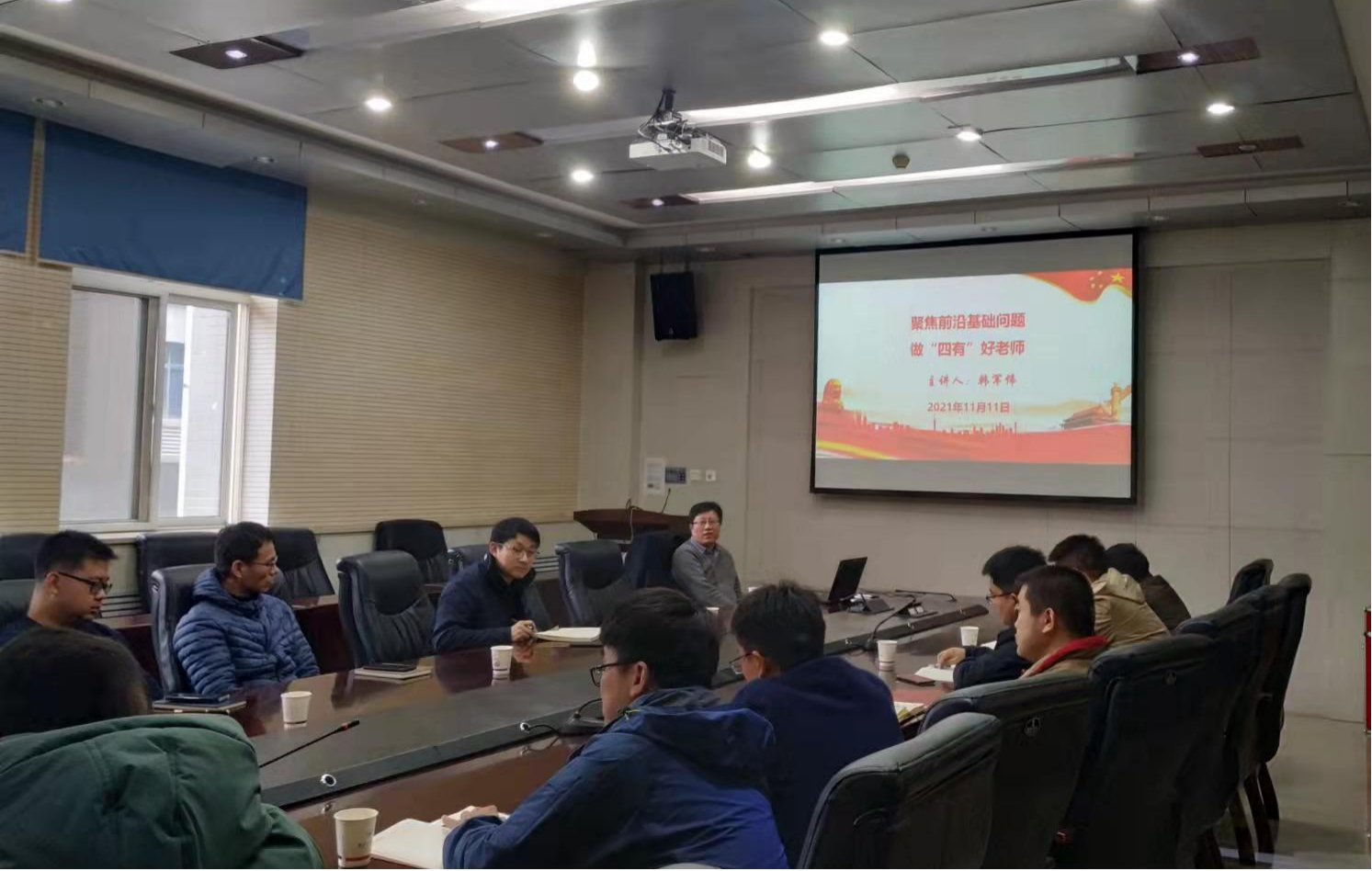 党委书记韩军伟教授于2021年11月11日面向学院教职工支部书记、支委、青年教师讲授“聚焦前沿基础问题,做“四有”好老师”主题党课暨2022年度国家自然科学基金申报动员辅导会。性爱直播